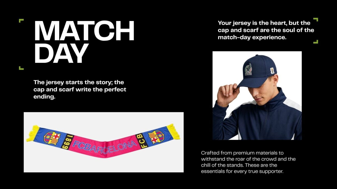 Don’t just wear the jersey—live the game. Our premium scarves and street-ready caps are the final pieces of your match-day armor. Designed with bold embroidery and high-quality knit, these essentials are built for the stadium atmosphere and the daily grind.